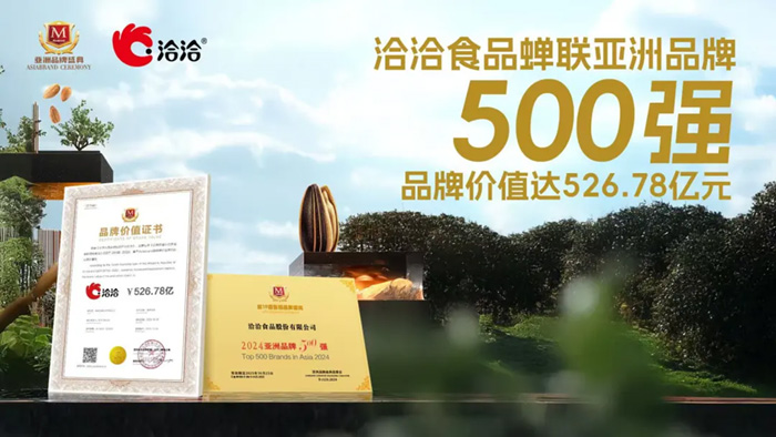 本次評選活動共吸引了700+優(yōu)質(zhì)品牌報名參與,新浪潮對八大類目領(lǐng)航品牌進(jìn)行了年度頒獎,洽洽的獲獎不僅是對其領(lǐng)航地位的肯定,也是對其品牌力量持續(xù)增長和深遠(yuǎn)影響的認(rèn)可。經(jīng)過多年發(fā)展,洽洽品牌價值不斷提升,今年10月,洽洽以526.78億的品牌價值再度上榜亞洲品牌500強(qiáng)。