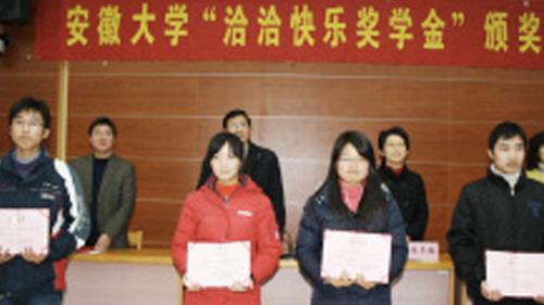 相繼在合肥五中、六安一中、合肥三十八中、安徽財(cái)經(jīng)大學(xué)、江南大學(xué)、安徽工業(yè)經(jīng)濟(jì)技術(shù)職業(yè)學(xué)院等學(xué)校設(shè)立“洽洽”快樂(lè)獎(jiǎng)學(xué)金。 2008年起,連續(xù)五年在安徽大學(xué)設(shè)立“洽洽”快樂(lè)獎(jiǎng)學(xué)金 ,每年獎(jiǎng)學(xué)金金額為20萬(wàn)元,共計(jì)100萬(wàn)元。