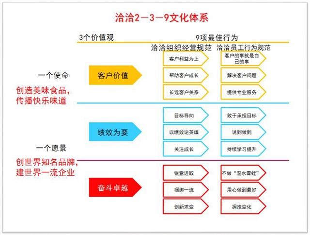 從今天起,2-3-9文化體系是洽洽組織和員工的行為準(zhǔn)則,是支持我們實現(xiàn)公司戰(zhàn)略的動力源泉。希望在洽洽2-3-9文化體系的指引下,洽洽人能夠圍繞“客戶價值、績效為要、奮斗卓越”來開展各項工作,從理念、制度、行為等各方面逐步做出調(diào)整,以有形的制度為依據(jù),以無形的價值觀為準(zhǔn)繩,言行一致,知行合一,為實現(xiàn)洽洽的突破制勝、個人的卓越發(fā)展而不斷努力!