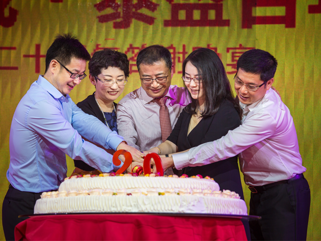 切蛋糕環(huán)節(jié),華泰集團(tuán)董事長陳先保先生、洽洽食品總經(jīng)理陳冬梅女士、華泰集團(tuán)副總裁陳奇女士、華邦地產(chǎn)董事長楊青云先生以及華元金融董事長孟虎先生5人同持一把蛋糕刀,緩緩切開華泰二十歲生日蛋糕,場面溫馨動人。