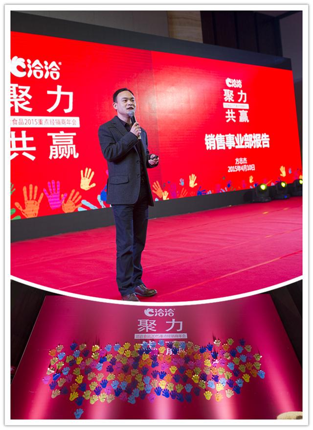 大會(huì)伊始,總裁陳冬梅女士致歡迎辭,對(duì)各位經(jīng)銷(xiāo)商的到來(lái)表示熱烈歡迎,并對(duì)一年來(lái)辛勤付出的經(jīng)銷(xiāo)商伙伴們表示最誠(chéng)摯的感謝??偛弥赋?015年洽洽將在組織改革背景下,繼續(xù)以堅(jiān)果炒貨為核心,加強(qiáng)渠道精耕及直營(yíng)渠道建設(shè)力度,線上線下雙向發(fā)展。依托戰(zhàn)略發(fā)展繼續(xù)開(kāi)展產(chǎn)品優(yōu)化升級(jí),進(jìn)一步提升人力資源管理及供應(yīng)鏈能力,與經(jīng)銷(xiāo)商們攜手并肩、同心協(xié)力、穩(wěn)步進(jìn)取、互惠共贏。緊接著國(guó)葵事業(yè)部、炒貨事業(yè)部、焙烤事業(yè)部、堅(jiān)果事業(yè)部總經(jīng)理和市場(chǎng)部經(jīng)理分別作了產(chǎn)品的工作報(bào)告。最后銷(xiāo)售事業(yè)部總經(jīng)理方志杰先生代表銷(xiāo)售事業(yè)部及各經(jīng)營(yíng)中心作了銷(xiāo)售工作報(bào)告,對(duì)2014年的銷(xiāo)售工作和區(qū)域經(jīng)營(yíng)模式的創(chuàng)新進(jìn)行了回顧和總結(jié),同時(shí)也對(duì)2015年的銷(xiāo)售策略進(jìn)行詳細(xì)的規(guī)劃。他介紹了銷(xiāo)售事業(yè)部目前的組織架構(gòu),通過(guò)組織能量釋放、渠道精耕精進(jìn)、競(jìng)爭(zhēng)市場(chǎng)提升、強(qiáng)化對(duì)品類(lèi)發(fā)展的推力,從而加速洽洽發(fā)展。簡(jiǎn)而言之:變革實(shí)現(xiàn)品類(lèi)突破,渠道驅(qū)動(dòng)市場(chǎng)發(fā)展,聚力鑄就競(jìng)爭(zhēng)趨勢(shì),堅(jiān)持創(chuàng)造共贏未來(lái)。