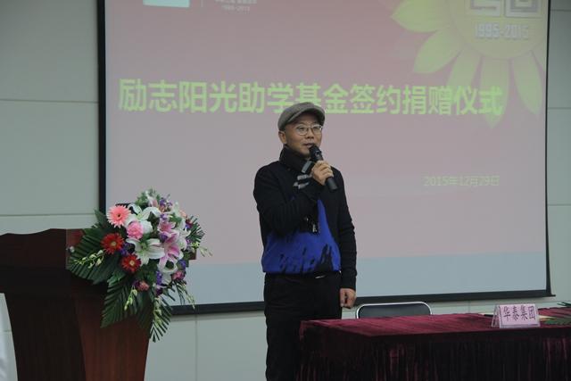 隨后,華泰集團(tuán)董事長(zhǎng)陳先保先生進(jìn)行致辭,他表示做慈善是一個(gè)能使人獲得心靈安慰的事情,此次捐贈(zèng)儀式是華泰與勵(lì)志陽(yáng)光基金合作的開(kāi)始,華泰將一直會(huì)把慈善做下去。