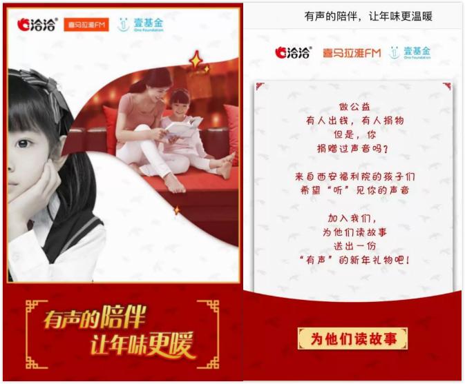 孤兒也是社會的弱勢群體之一,卻常常不被關(guān)注。為了給這些孩子送去陪伴和溫暖,洽洽圍繞“洽洽是陪伴,讓年味更暖”這個主題,與喜馬拉雅FM和壹基金合作,推出有聲的陪伴公益活動——《有聲的陪伴,讓年味更暖》。