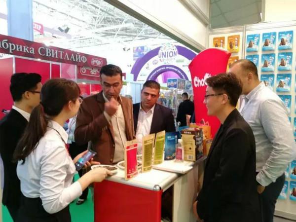 為更好的布局洽洽全球化戰(zhàn)略,9月17日至20日,洽洽食品在莫斯科國際會展中心Expocentre Exhibition Center參加一年一屆的俄羅斯莫斯科國際食品展,展會面積達到23000平方。展會期間,來自俄羅斯、中亞及歐洲各個地區(qū)的客戶駐足品嘗我司產(chǎn)品,17日當天收獲來自哈薩克地區(qū)兩家有合作意向的客戶,海外市場潛力無限廣闊。銷售事業(yè)部全體成員有信心做強做大海外市場,加速突破,挺近歐亞大陸!
