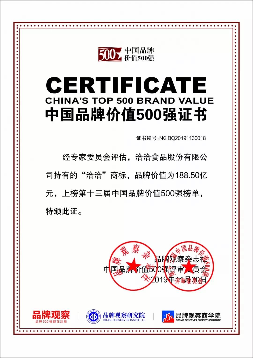 其中最具權(quán)威性的“第十三屆中國品牌價(jià)值500強(qiáng)”評選活動(dòng),可謂是優(yōu)中選優(yōu),含金量頗高,向來備受關(guān)注。洽洽以188.50億元的品牌價(jià)值榮登2019年第十三屆“中國品牌價(jià)值500強(qiáng)”,并以《洽洽全球直播透明工廠》上榜“2019中國最佳EMBA案例獎(jiǎng)”,此外,洽洽食品董事長陳先保先生憑借社會影響力被大會授予2019全國品牌兩會“中國社會進(jìn)步貢獻(xiàn)獎(jiǎng)”(人物獎(jiǎng)),品牌影響力及美譽(yù)度大幅度攀升。
