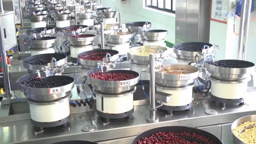 堅(jiān)果智能數(shù)粒機(jī):智能數(shù)粒系統(tǒng)根據(jù)營(yíng)養(yǎng)均衡黃金配比,自動(dòng)精準(zhǔn)分配與控制每袋堅(jiān)果和果干的配比、重量,讓每一袋小黃袋都具備均衡的營(yíng)養(yǎng)。
