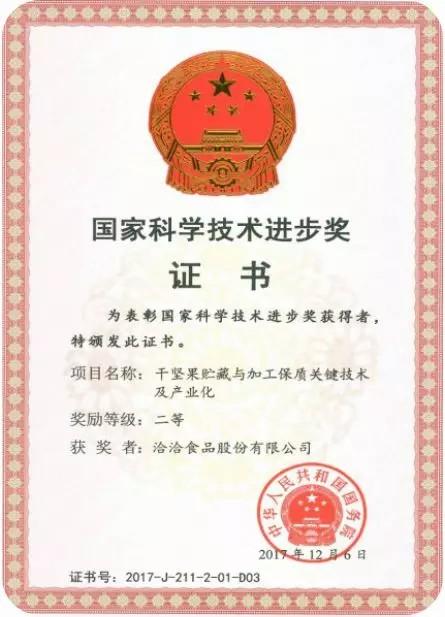 作為堅(jiān)果行業(yè)首家入選國家健康品牌計(jì)劃的企業(yè),洽洽一直堅(jiān)持對(duì)技術(shù)創(chuàng)新及品質(zhì)的高要求及高追求。在業(yè)內(nèi),中國工信部授予了洽洽“堅(jiān)果智能制造試點(diǎn)示范單位”榮譽(yù),中國農(nóng)業(yè)農(nóng)村部也認(rèn)證洽洽為“國家堅(jiān)果加工技術(shù)研發(fā)專業(yè)中心”。洽洽所掌握的“干堅(jiān)果儲(chǔ)藏及加工保質(zhì)關(guān)鍵技術(shù)”更是獲得了“中國國務(wù)院頒發(fā)的“國家科學(xué)技術(shù)進(jìn)步獎(jiǎng)”,受到國家行業(yè)的普遍認(rèn)可。