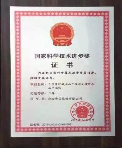 洽洽所掌握的“干堅果儲藏及加工保質(zhì)關(guān)鍵技術(shù)”更是獲得了“中國國務(wù)院頒發(fā)的“國家科學(xué)技術(shù)進(jìn)步獎”,受到國家及行業(yè)的普遍認(rèn)可。