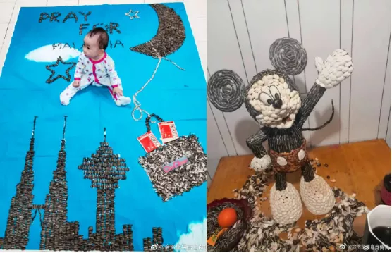 不逼自己一把,永遠(yuǎn)不會(huì)知道自己的創(chuàng)造力有多強(qiáng)。有人拼出了人體器官,有人擺出了寶寶藝術(shù)照……還有一位青島小哥就因?yàn)猷竟献拥巧蠂?guó)外媒體的頭條,他把磕完的瓜子殼,硬是出神入化般的變成一只可愛的米奇。