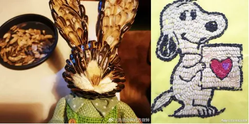 還有人隨手嗑出了各種動(dòng)物,小灰兔、史努比也不在話下,雙手一定是被上帝吻過了吧。果然高手在民間,人人都是藝術(shù)家,感覺自己都不配嗑瓜子了。