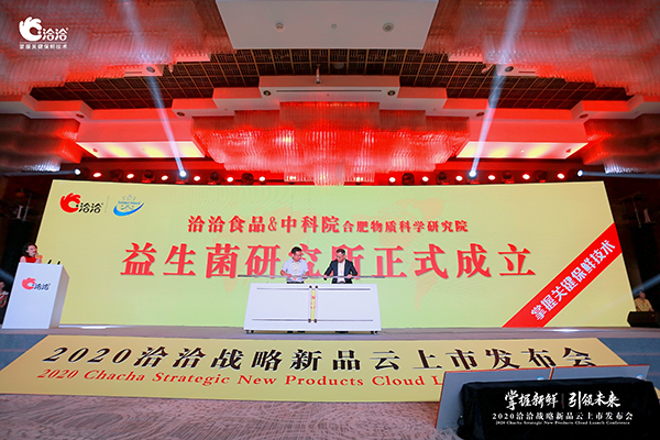洽洽的每一款產(chǎn)品,從研發(fā)設(shè)計之初,就密切關(guān)注堅果給日常膳食帶來的營養(yǎng)價值。此次發(fā)布“堅果+”戰(zhàn)略新品里涉及到對益生菌的應(yīng)用。益生菌作為一種有益的活性微生物,可以幫助人們調(diào)節(jié)腸道內(nèi)菌群平衡,促進人體營養(yǎng)吸收的同時保持腸道健康。尤其是免疫力低下,消化不良的,腸道功能減弱的人最適宜食用含益生菌的食品。為扎實益生菌堅果的營養(yǎng)基礎(chǔ),助力國家在益生菌方面的研究,洽洽聯(lián)手中科院共同成立益生菌研究所并在發(fā)布會上舉行掛牌儀式,由洽洽食品董事長陳先保和中科院合肥研究院常務(wù)副所長劉甫坤正式揭幕。