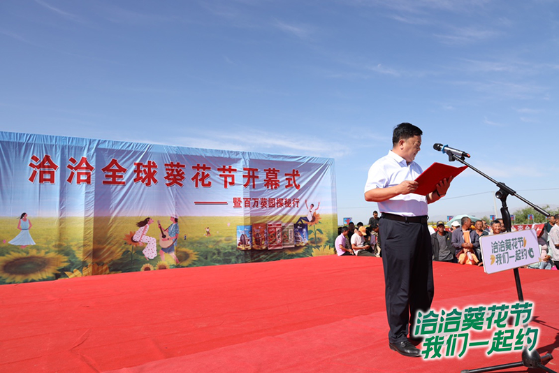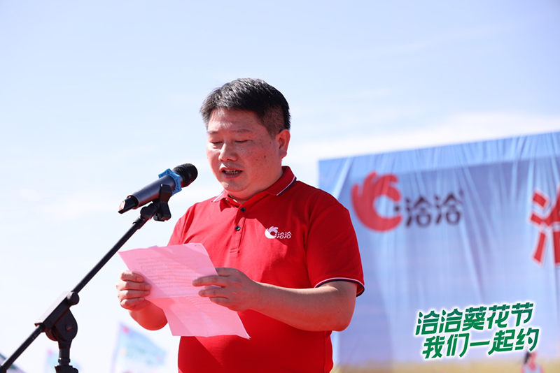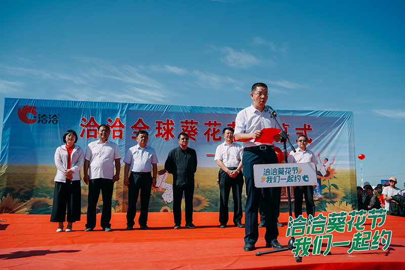 市、旗領(lǐng)導(dǎo)邱永紅、郭宏、王國棟、李懷義以及洽洽食品集團(tuán)副總裁陳俊等出席了洽洽全球葵花節(jié)的開幕式。在開幕儀式上,政府副旗長王新祿以及洽洽食品集團(tuán)副總裁陳俊分別就此次活動進(jìn)行了致辭,其中陳俊總表示“洽洽食品華葵農(nóng)業(yè)部在推廣訂單農(nóng)業(yè)的過程中,和巴彥淖爾地區(qū)展開密切合作,助力巴彥淖爾地區(qū)食葵在品種資源端不斷創(chuàng)新進(jìn)步發(fā)展”,并許下了希望和巴彥淖爾食葵產(chǎn)業(yè)一起“走出中國、走出亞洲、走向全球”的希冀,兩方代表皆對洽洽與內(nèi)蒙合作開展此次活動的意義進(jìn)行了肯定,并對到場的消費者粉絲表達(dá)了美好祝愿。最后,市政府副市長邱永紅宣布“洽洽全球葵花節(jié)”活動正式開始。