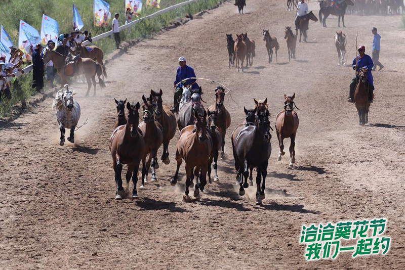 全球葵花節(jié)開幕式結(jié)束后,眾人受邀來到了蠻會鎮(zhèn)海龍馬產(chǎn)業(yè)賽馬表演的現(xiàn)場,賽場上人們策馬揚鞭,一展騎士本色,觀眾們高聲吶喊,助威賽事。精彩的馬術(shù)表演不僅吸引了來自全旗各鄉(xiāng)鎮(zhèn)和周邊地區(qū)賽馬愛好者的參與,也成為此次溯源之旅的重要亮點之一。政府副旗長王新祿指出,綻放的向日葵和奔騰的駿馬不僅搭建了溝通的橋梁、連起友誼的紐帶,更為洽洽與內(nèi)蒙巴彥淖爾地區(qū)的合作奠定了堅實基礎(chǔ)。