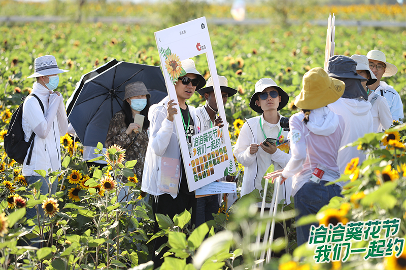 作為一家始終堅持帶給消費者快樂感受的食品企業(yè),洽洽食品本次活動以“洽洽葵花節(jié),我們一起約”為主題,不僅邀請了當(dāng)?shù)卣?,更是從微博、天貓、京東等網(wǎng)絡(luò)渠道精心挑選了30名鐵桿粉絲,一同前往內(nèi)蒙萬畝葵園游玩、打卡,由此開啟一場全民共創(chuàng)的溯源之旅。