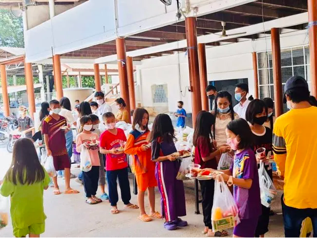 當(dāng)日,洽洽食品泰國工廠購買了豐富多樣的食材,由洽洽工廠泰籍、緬甸籍員工為孩子們做了一頓豐盛美味的午餐,期間與孩子們親切交談,了解他們的學(xué)習(xí)及生活情況。此外,洽洽工廠還為該基金會購買了米、面、油等生活物資以維持日?;旧?/span>,幫助他們解決實(shí)際性的難題。