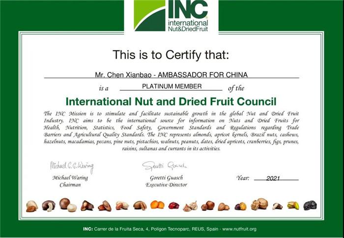INC國(guó)際堅(jiān)果及干果協(xié)會(huì)是全球領(lǐng)先的集堅(jiān)果和干果健康營(yíng)養(yǎng)、食品安全統(tǒng)計(jì)、堅(jiān)果國(guó)際標(biāo)準(zhǔn)和法規(guī)制定等為一體的國(guó)際性組織,相當(dāng)于堅(jiān)果行業(yè)的“聯(lián)合國(guó)”,目前成員包括來(lái)自全球70多個(gè)國(guó)家的700多家堅(jiān)果和干果公司,涵蓋了全球堅(jiān)果絕大部分產(chǎn)區(qū)和市場(chǎng)。洽洽食品股份有限公司副總裁陳奇于2019年當(dāng)選INC全球堅(jiān)果及干果委員會(huì)理事會(huì)理事。