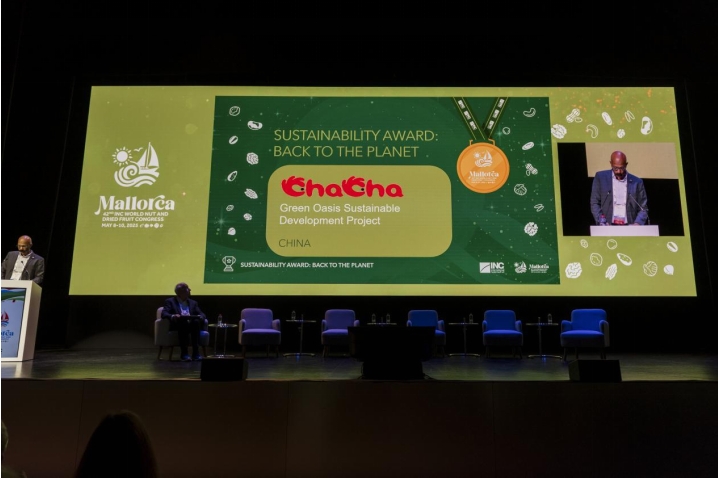 在本次大會上,洽洽食品憑借其卓越的可持續(xù)發(fā)展實踐,榮獲回歸地球項目“INC2025可持續(xù)發(fā)展獎”,成為中國堅果行業(yè)首家獲此殊榮的企業(yè)。該項目自2021年啟動以來,聚焦全生命周期綠色制造,覆蓋堅果種植、沙漠生態(tài)修復(fù)及可再生能源應(yīng)用三大領(lǐng)域。