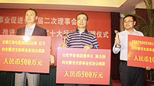 2012年9月28日,安徽省光彩事業(yè)促進(jìn)會三屆二次理事會在合肥召開,董事長陳先保先生代表企業(yè)向光彩事業(yè)捐資500萬。該款項為定向捐款,用于扶植金寨縣和石臺縣的種植業(yè)、養(yǎng)殖業(yè)和農(nóng)業(yè)綜合開發(fā)項目。項目實施后,將會極大地推動鄉(xiāng)村建設(shè),帶動兩縣發(fā)展農(nóng)業(yè)、富裕農(nóng)民。