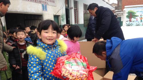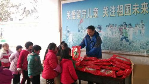 盡管當?shù)貏傁峦瓯┭鞖猱惓:?,但是準時到達的年貨卻讓學(xué)校里充滿了笑聲和溫暖。志愿者們每發(fā)一份年貨,孩子們都說一聲“謝謝”,看著孩子們臉上的笑容,所有的工作都是值得的。