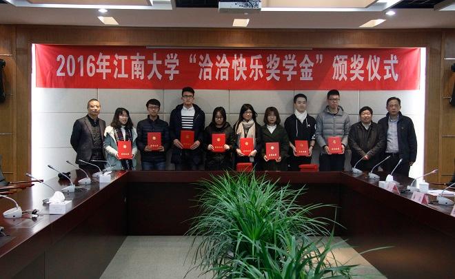 11月25日下午,2016年江南大學(xué)“洽洽快樂獎(jiǎng)學(xué)金”頒獎(jiǎng)儀式在行政樓B307隆重舉行。江南大學(xué)校長(zhǎng)陳堅(jiān)、合肥華泰集團(tuán)董事長(zhǎng)陳先保、洽洽食品股份有限公司副總裁巢駿及來自各學(xué)院的25名獲獎(jiǎng)學(xué)生出席本次儀式。江南大學(xué)校長(zhǎng)助理兼學(xué)生工作處處長(zhǎng)崔寶同、副處長(zhǎng)張海峰等共同參加了活動(dòng)。頒獎(jiǎng)儀式由社會(huì)資源處副處長(zhǎng)張文主持。