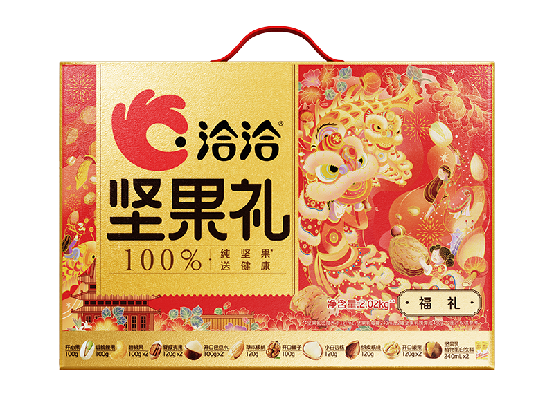 內(nèi)容物:100g開心果、100g香脆腰果、100g碧根果*2、120g夏威夷果*2、100g開口巴旦木*2、120g紙皮核桃、120g草本核桃、100g開口榛子、120g小白杏核、120g開口板栗*2、240ml堅(jiān)果乳*2